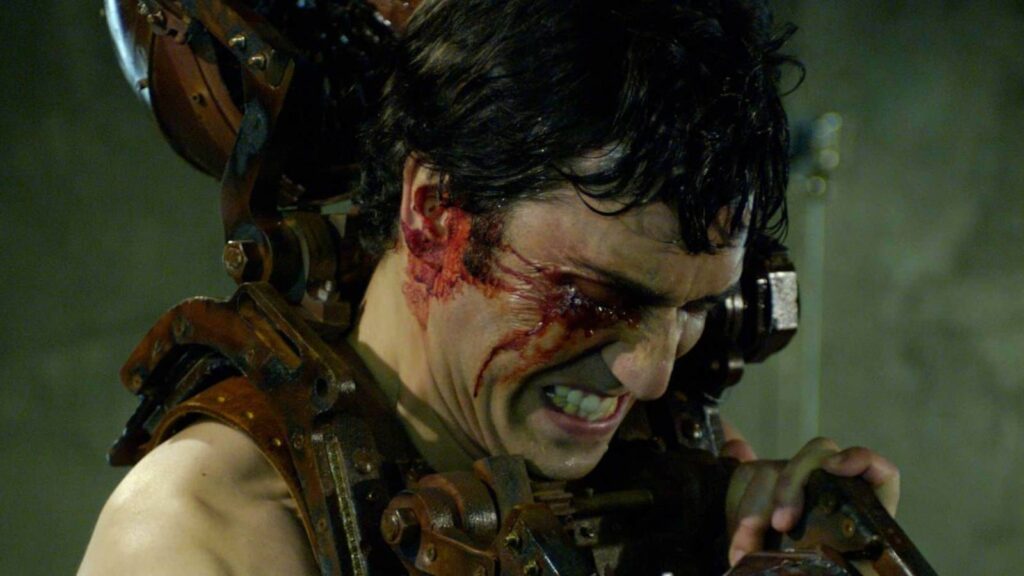 A violência condiz com a franquia, mas essa cena se destaca entre as aberturas. É, sem dúvida, o melhor começo de um filme da série Evil Dead, abrindo com um impacto maior que qualquer outra entrada. Além disso, a imagem da garota possuída flutuando sobre a água enquanto o título surge é simplesmente perfeita.