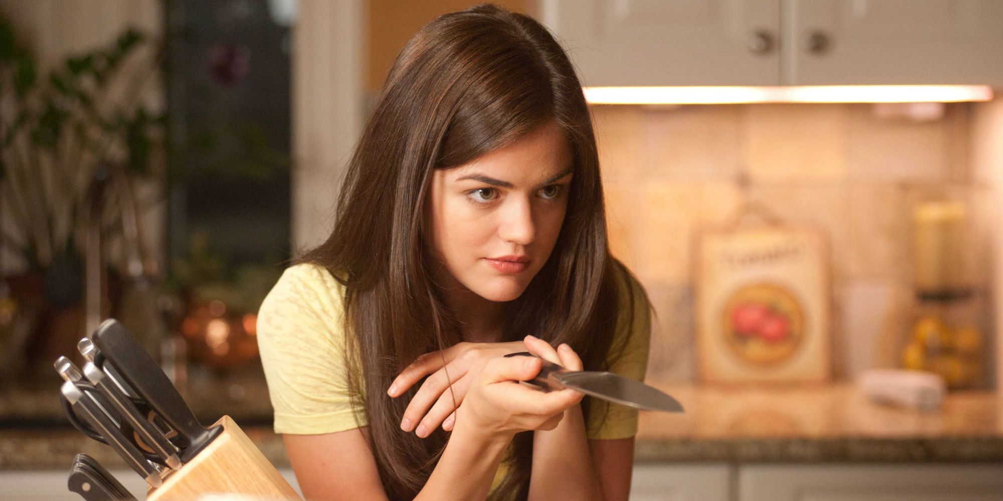 Essa narrativa se entrelaça com outra cena de um filme Stab, assistido por mais duas celebridades televisivas – Britt Robertson e Aimee Teegarden – que também acabam sendo atacadas por um assassino. Essa mistura de realidade com ficção deixa o espectador em dúvida sobre o que é real, tornando-a a melhor cena inicial de Scream desde o primeiro filme.