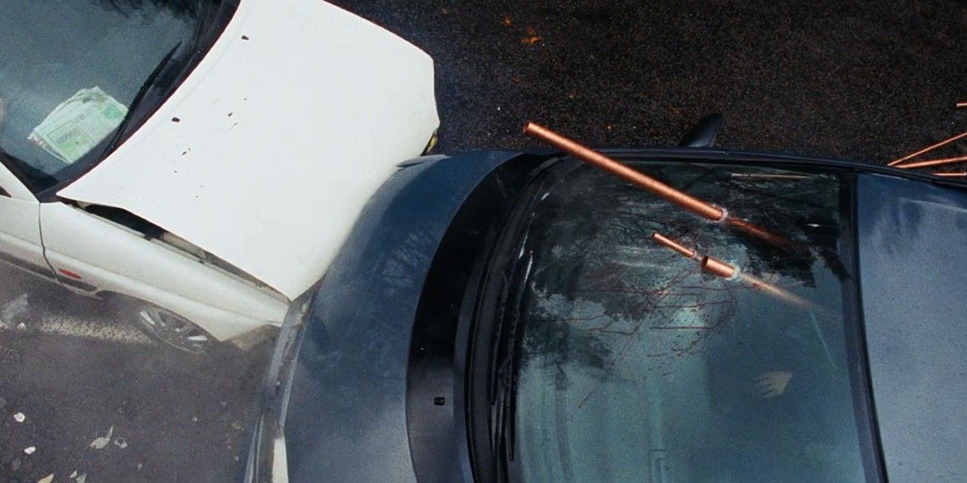 Quando o galho atinge o chão, vemos as pessoas sendo levantadas e, em câmera lenta, se contorcendo enquanto se penduram até a morte. Os efeitos da câmera lenta, o estilo granuloso e o mistério que prevalece antes de sermos apresentados aos personagens principais tornam a cena ainda mais angustiante.