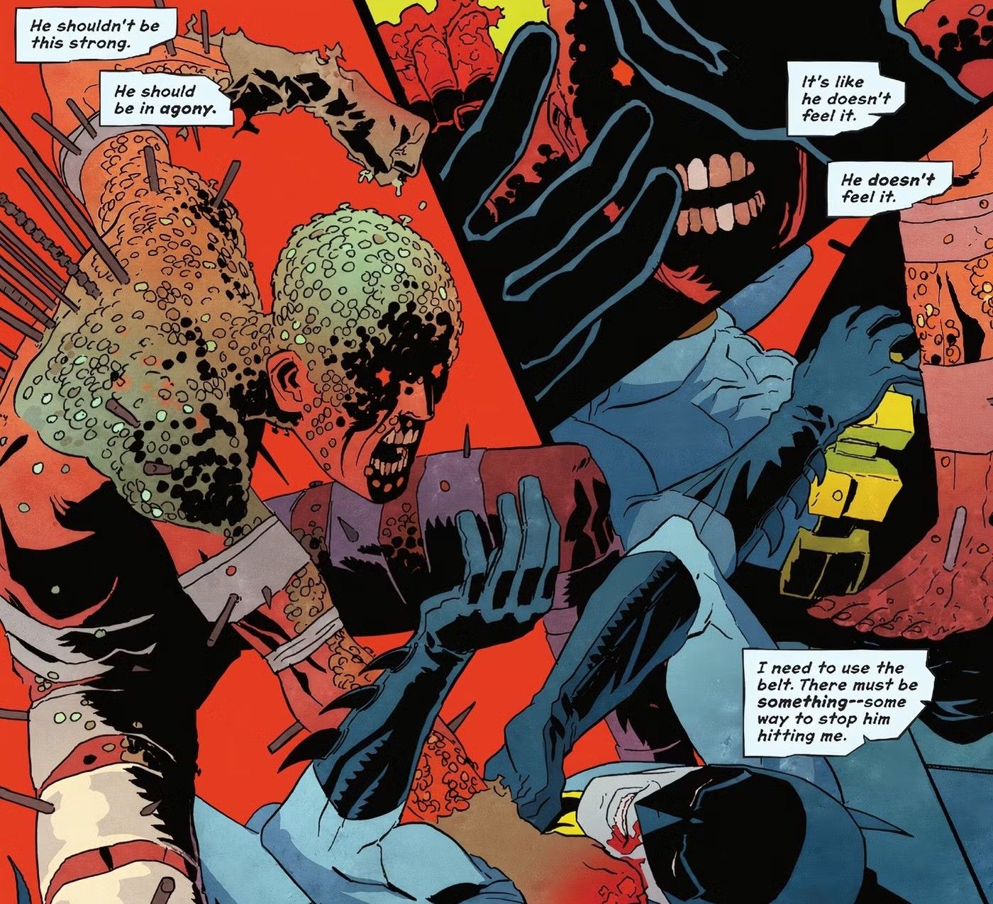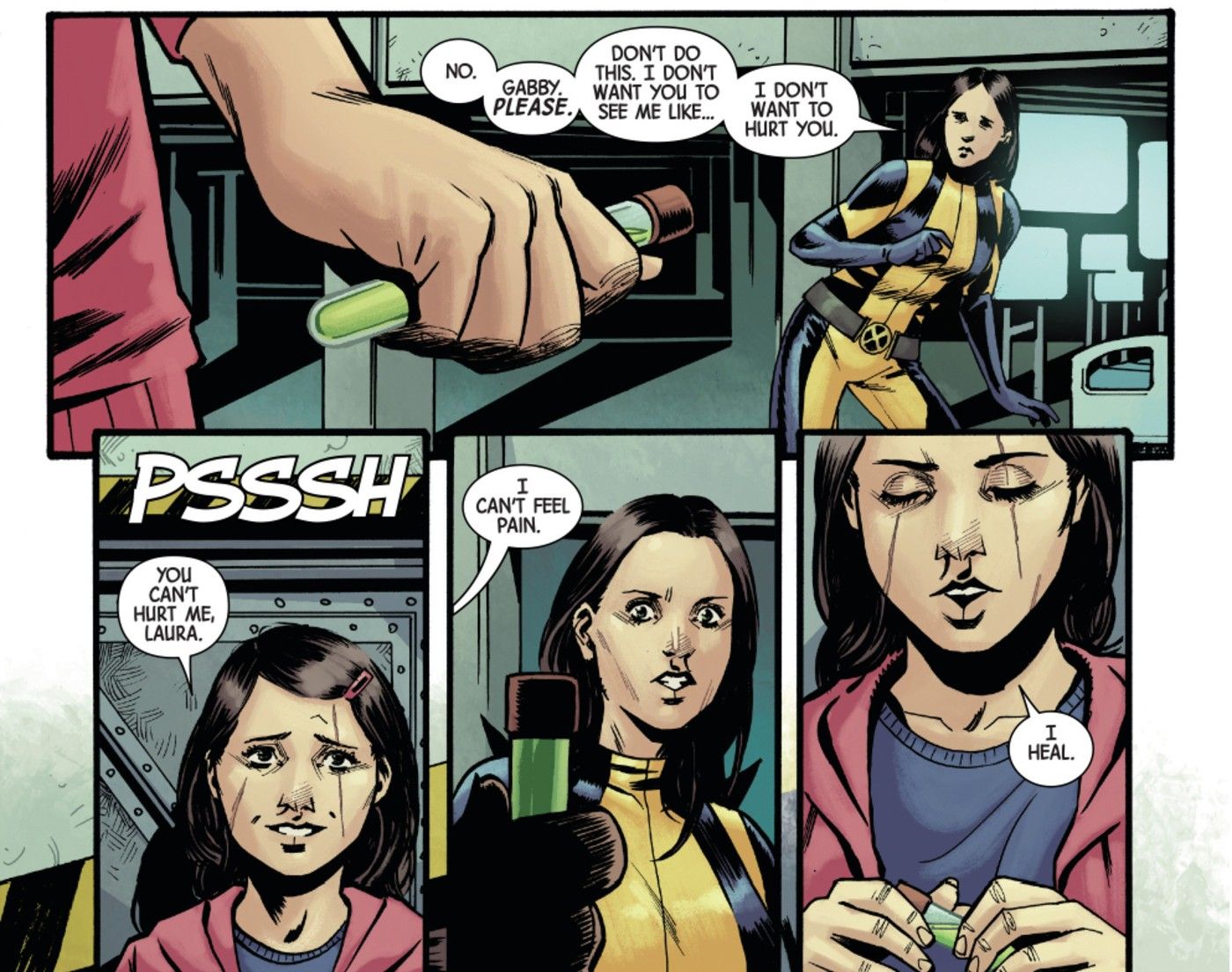 A liberdade da dor é um conceito que soa bem, se não se pensar muito a fundo, e aparece em muitas obras de ficção de super-heróis. Lutadores contra o crime como Kick-Ass, Spider-Man Noir e até a meio que filha do Wolverine, Gabby Kinney, utilizam essa imunidade para continuar batalhando onde outros sucumbiriam, enquanto vilões – seja Metallo (de Superman), Ajax (de Deadpool), Nuke (de Demolidor), Wound Man (de Batman) ou Thug (dos X-Men) – se comportam como se fossem invulneráveis.