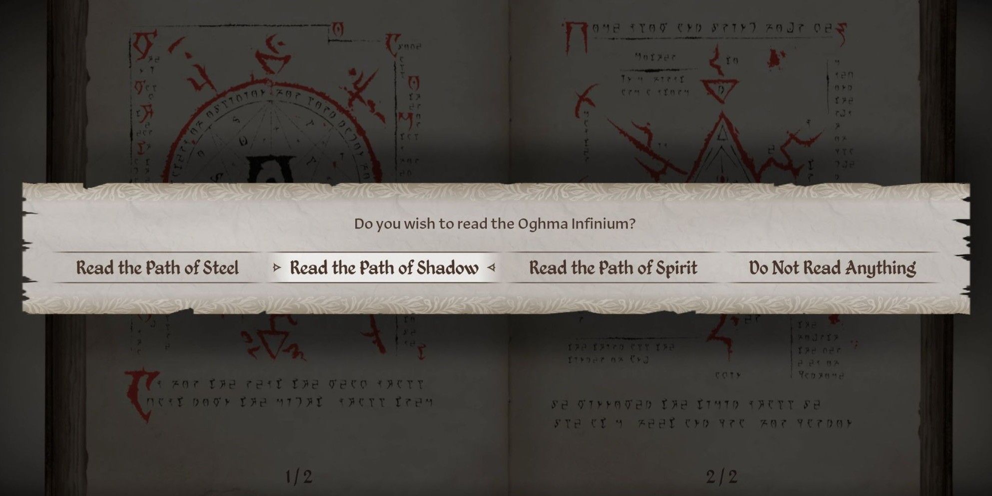 Uma vez adquirido, ler o Oghma Infinium permite que os jogadores aumentem permanentemente três habilidades e dois atributos em 10 pontos. Quais habilidades e atributos serão aprimorados dependerá do caminho que o jogador escolher: O Caminho da Força para Velocidade, Força, Lâmina, Concussão e Armadura Pesada; o Caminho das Sombras para Agilidade, Velocidade, Armadura Leve, Segurança e Furtividade; ou o Caminho do Espírito para Inteligência, Vontade, Conjuração, Destruição e Restauração.